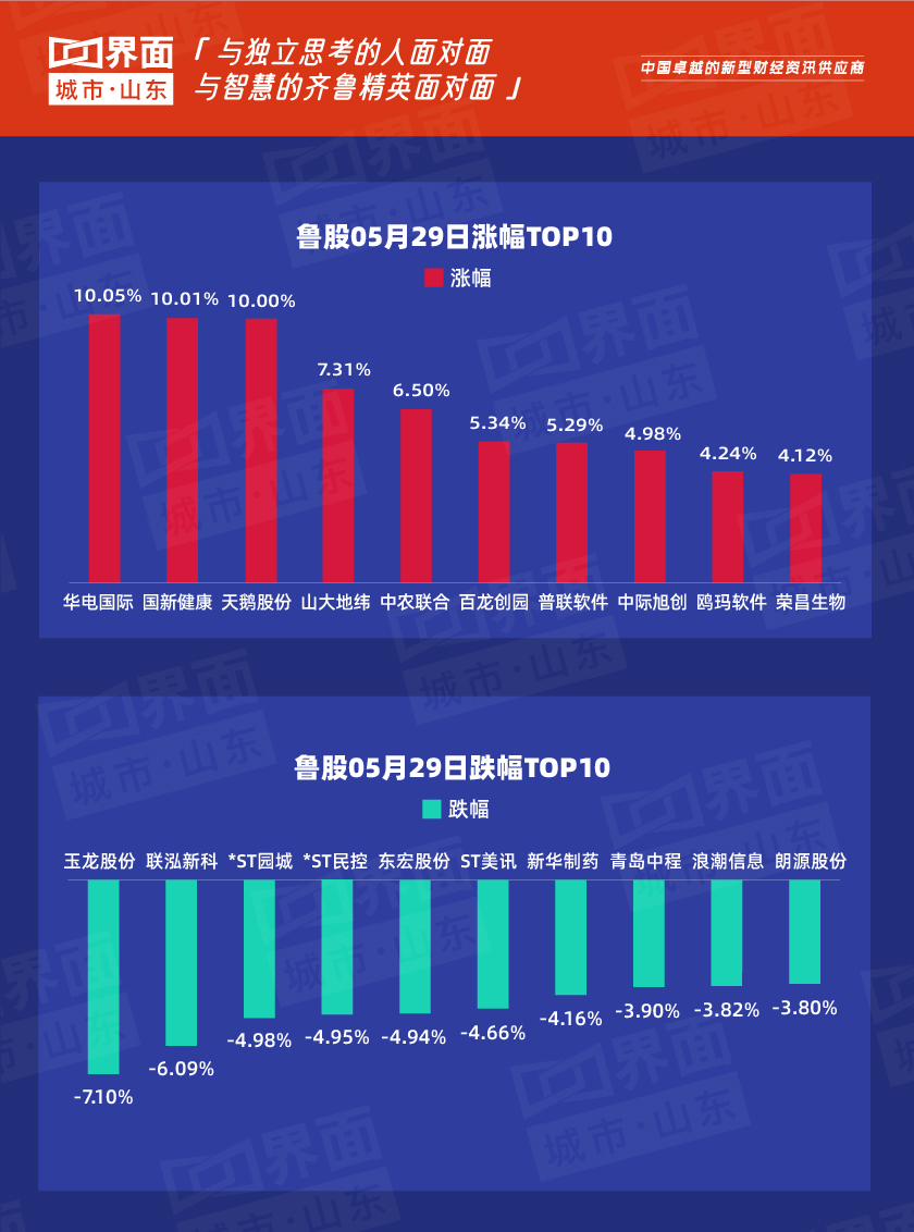 青岛市涨幅榜首:国新健康(000503),涨幅10.01%,股价13.08元,总市值118.6亿元;