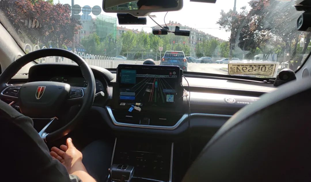 我们的上车地点是在一个小区的门口,Apollo停下的时候,刚好挡住了小区里驶出的一辆私家车。可能是系安全带、确认启动要花费一定时间,车上安全员转过头跟我们来说,「抱歉哈,我先挪下车」,他便立即接管了汽车。等到驶入正常道路,他才放手,切换成自动驾驶模式。
