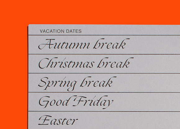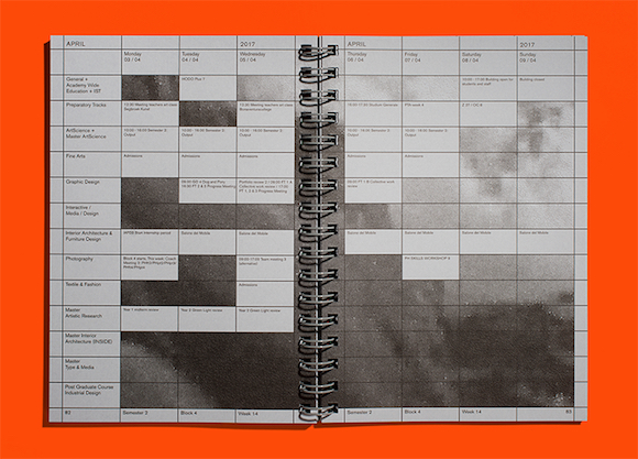 荷兰海牙皇家艺术学院一直以来都保留了邀请毕业生为母校做设计的传统。今年,学院就邀请了2014年的毕业生Koos Breen来为学院设计新一学年的招生宣传册、校历以及新生入校须知手册。这听上去可不是个好差事,因为要把这些“严肃”的印刷材料做的有设计感并不容易。更何况,设计的最终验收对象还是曾经的老师,而使用者更是自己的学弟学妹。