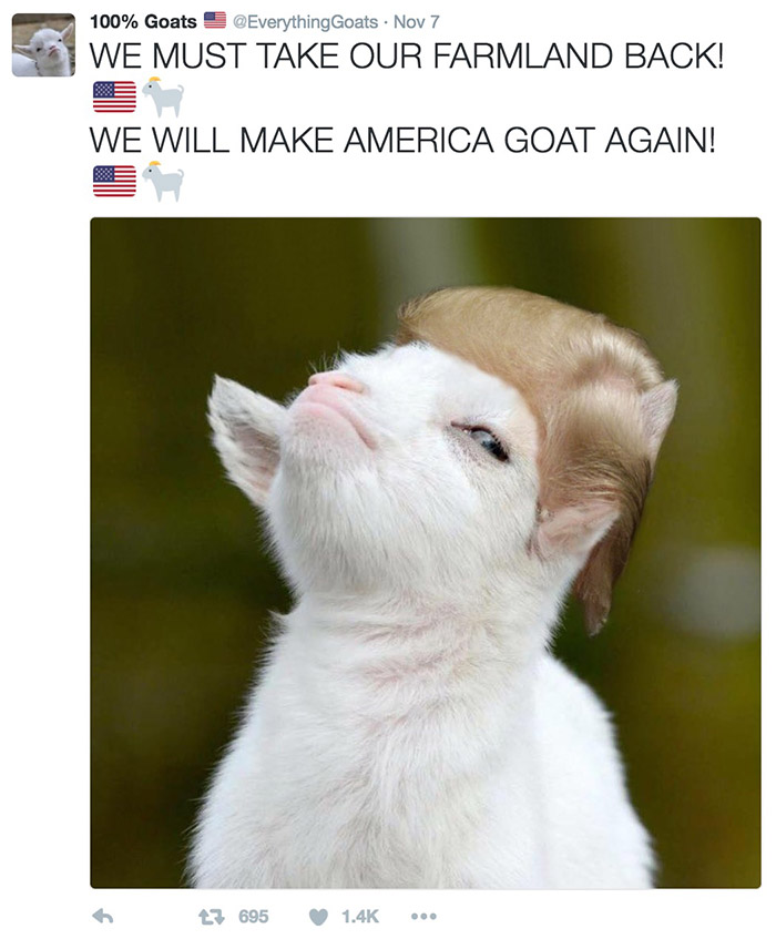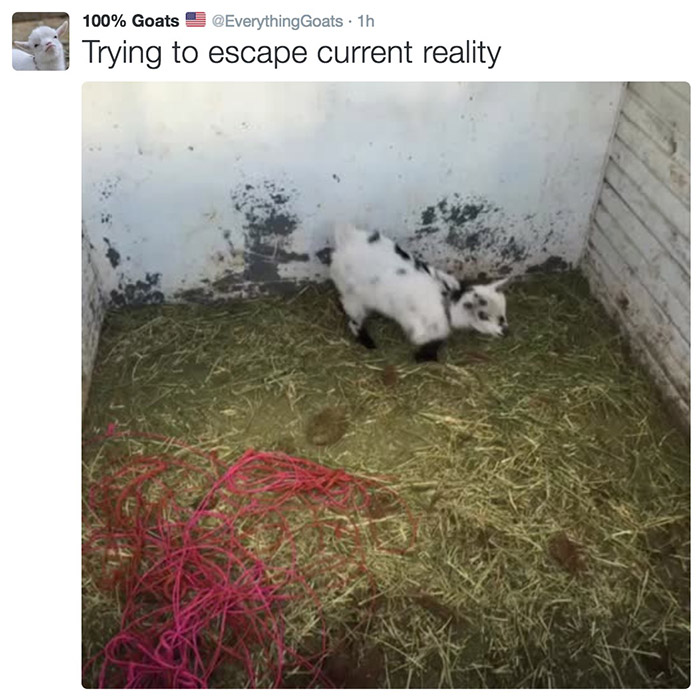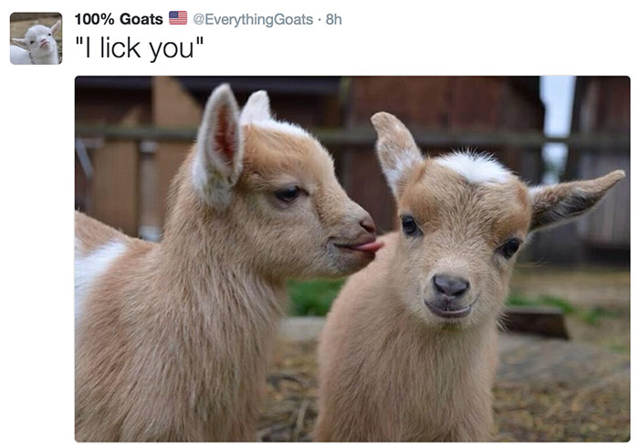 在这个社交网络已经被猫占领的时代,只有少数聪明人才能发现羊的可爱。Twitter博主100%Goats就是一个专门为可爱小羊创建的账号,看完之后感觉整个人都融化了。
