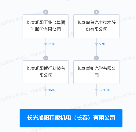 天眼查APP显示,近日,长光旭阳精密机电(长春)有限公司成立,注册资本1500万元,经营范围包含:微特电机及组件制造;光电子器件制造;半导体分立器件制造;汽车零部件研发等。天眼查股权穿透显示,该公司由奥普光电控股企业长春禹衡光学有限公司等共同持股。