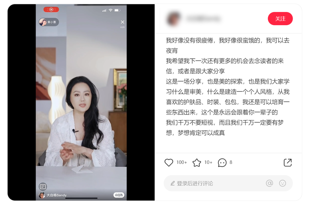 章小蕙不是因为平台而成为章小蕙,而是她本就是她自己,人格魅力和专业人设才是小红书直播场中吸引粉丝的第一要义。她们不再是单纯的“买它”,而是慢条斯理地在镜头前分享生活,如同认识很久的老友,坐下与你聊聊最近的爱用好物,感叹人生的跌宕起伏。