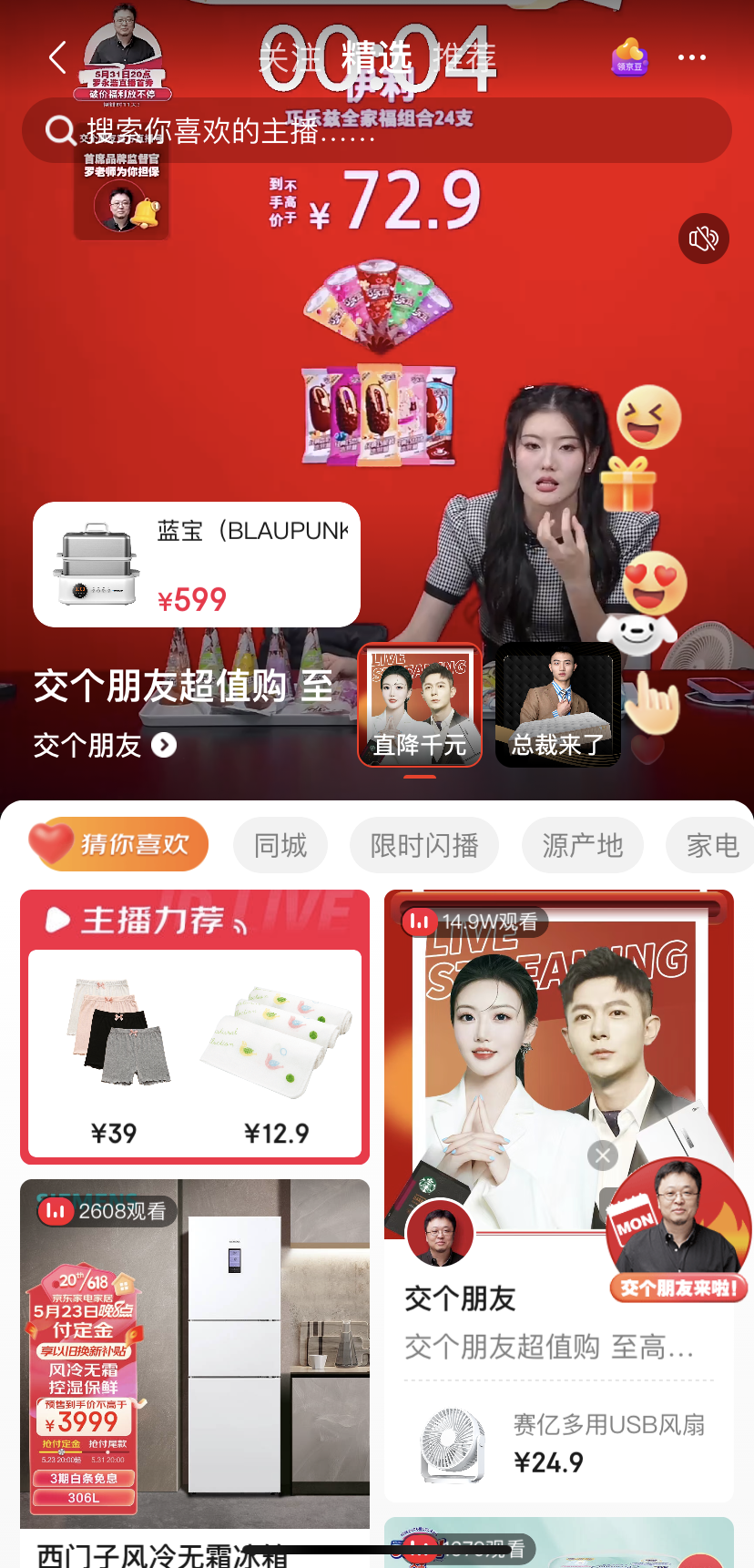 今年618,交个朋友直播间入驻京东直播时,依旧处于京东C位,但声量大减。