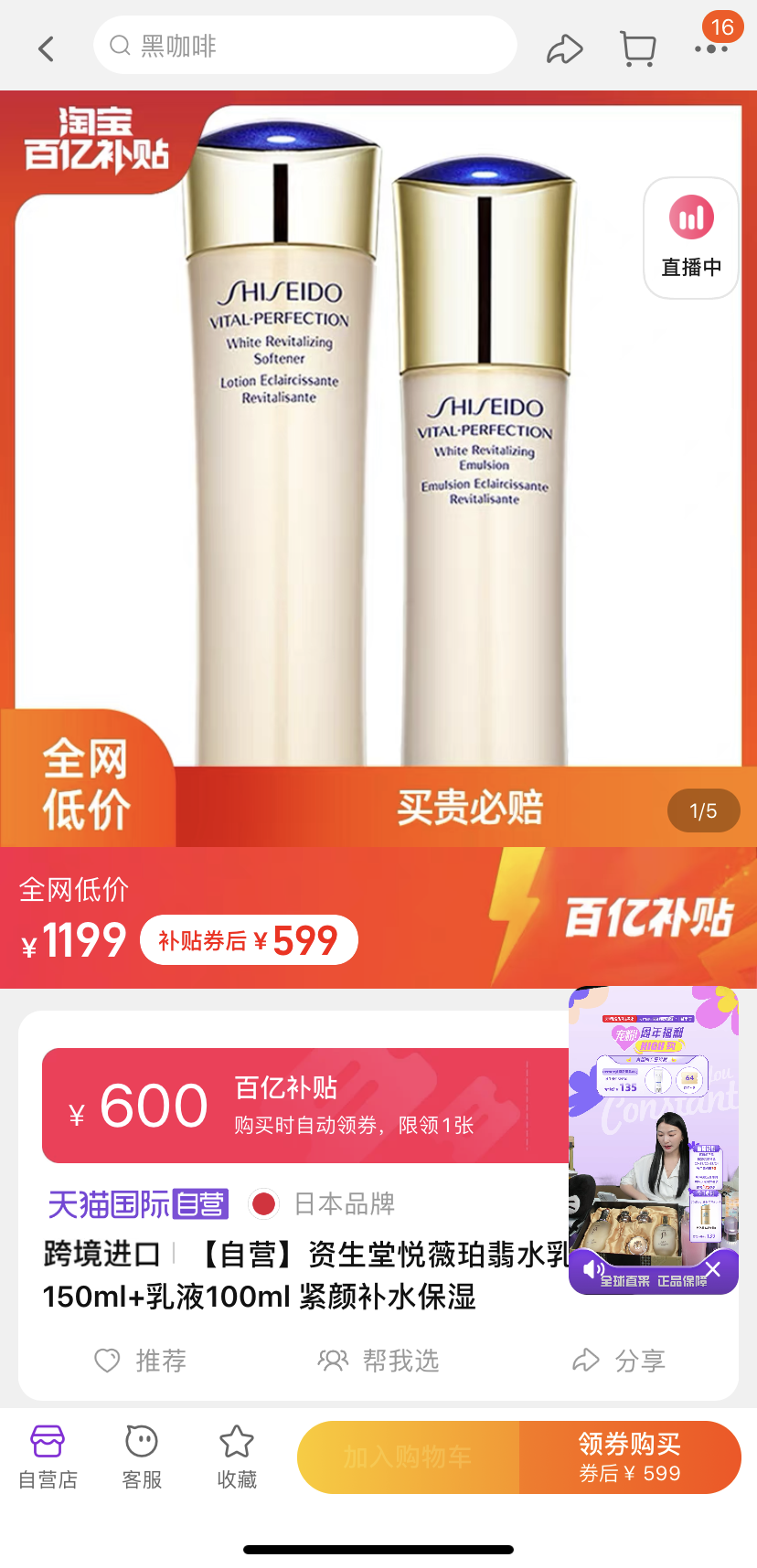 《IT时报》记者实测发现,京东百亿补贴的商家覆盖面比淘宝更广一些,虽然淘宝拿出了美妆这一优势品类,价格甚至比李佳琦直播间、海南免税店更便宜,比如SK-II神仙水230ml补贴价729元、娇韵诗双萃精华50ml补贴价578元,但是每个账号只能购买一次,也不参与满减,因为美妆护肤产品货源多由天猫国际自营提供,而每个店铺只有一次购买机会。