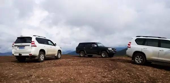 作为绝对的越野初学者,第一次出行顺利登顶好汉坡还是要留个纪念的。图右侧配全黑登车踏板的就是那台加装了后机械锁的2.7升霸道,登顶过程也毫无波澜。在给短轴Y61换胎时,图中TB45引擎的早期款Y61和2.7霸道均给予了热心帮助,衷心感谢!