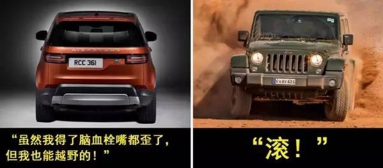 世家嘛,瞬间就有了历史的书香和厚重感,哪怕它俩产品线一共也只有牧马人这千顷地一棵苗、十八代单传的车子还在用独立大梁,哪怕它俩都成为了质量堪忧的代名词,哪怕路虎的Discovery 5变成了只歪嘴的中风虎。设计师和咖喱虎可能有世仇,也可能他有点斜眼儿--“能为青白眼,礼岂为我设”那种。