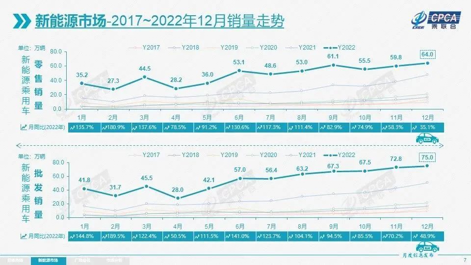 数据显示,2022年,特斯拉在中国市场销售接近44万台,排名第三。榜首的比亚迪已经冲到了180万辆。根据乘联会统计数据,2022年全国汽车累计零售2054.3万辆,同比增长1.9%。其中,燃油车零售1486.8万辆,同比减少230.2万辆;新能源零售567.4万辆,同比增加268.7万辆。