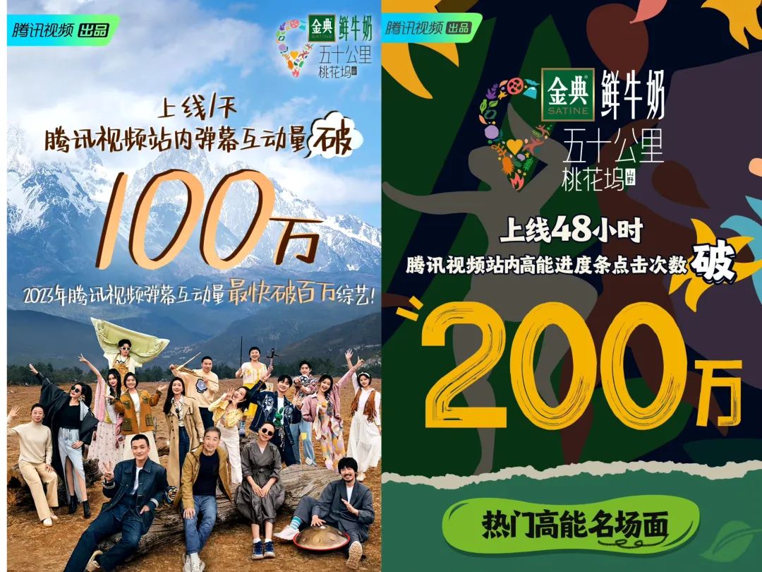在腾讯视频站内,开播首日,腾讯视频站内弹幕互动量破100万,成为了2023年腾讯视频弹幕互动量最快破百万综艺。同时,在开播48小时后,腾讯视频站内高能进度条点击数破200万。