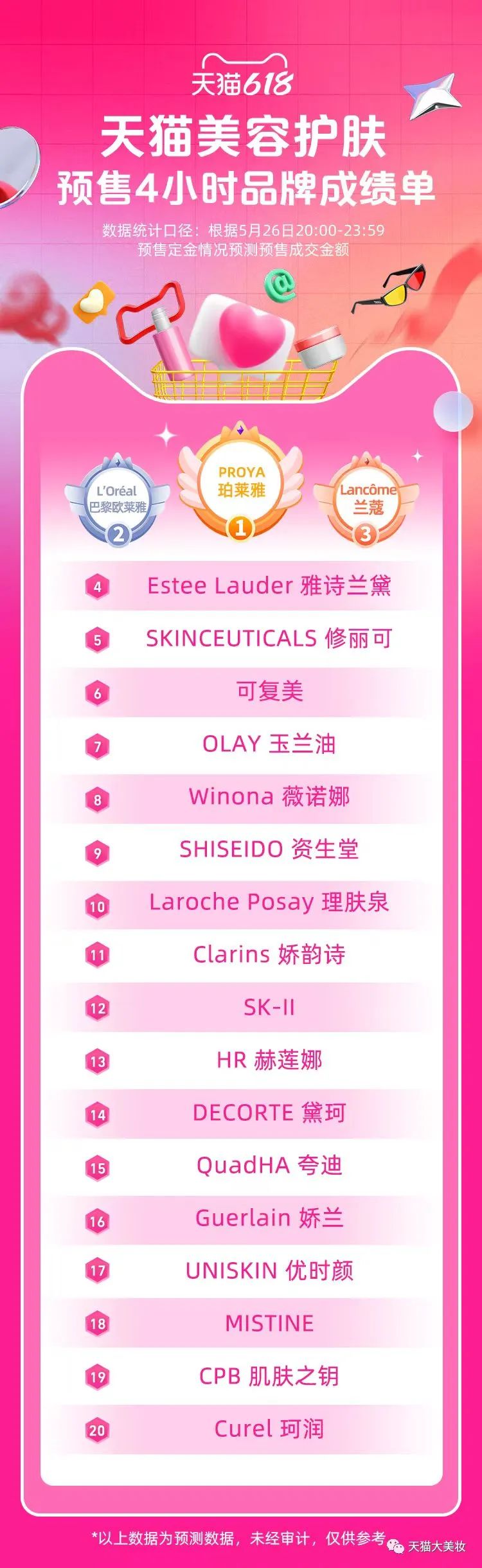 近日,据「天猫大美妆」公开数据,天猫618美妆行业在5月26日20:00-23:59的4小时内,珀莱雅预售总额位列榜首,其次分别为巴黎欧莱雅、兰蔻、雅诗兰黛和修丽可。珀莱雅在实行“大单品策略”后成效显著,从去年天猫双11销售排名第五一跃成为今年天猫618预售的Top1,为国货品牌注入强心剂。