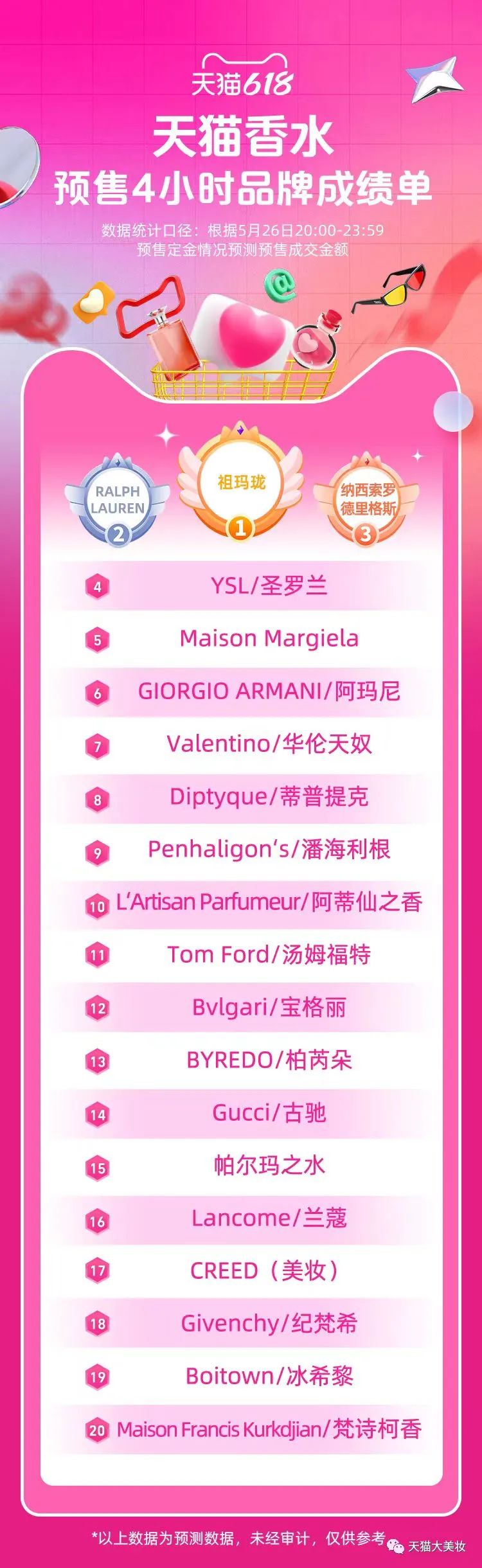 在香水领域,国外品牌还是占据了绝对的话语权,从此次榜单来看,排名前二十的品牌除冰希黎外均为国外品牌。
