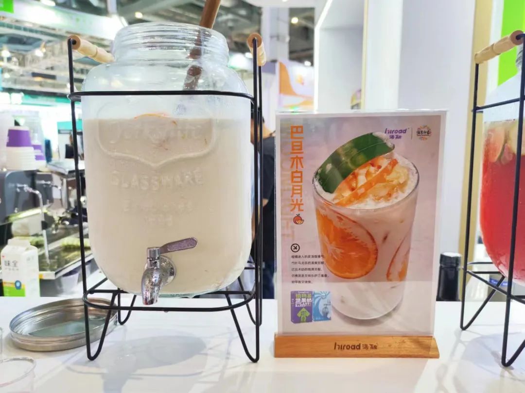 在百思味的展台,有一款名为“青醒一夏”的饮品,就借用苦瓜元素来传递夏日消暑的概念;逅唐展台的番茄乌梅饮,灵感来源于经典网红小食乌梅番茄,通过搭配茉莉茶底突出清爽感。