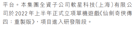 《仙剑4》重制版(以下简称《仙4R》)或许成了唯一的单机独苗,但玩家担心是否还能顺利推出。仙剑系列内地版权所有方中手游曾在2022年半年报中透露,《仙剑4》重制版已在2022年上半年立项,并进入研发阶段。据了解,这也是2015年上软重建后唯一操刀的单机项目,由方块游戏平台投资,用UE5开发,预计2024年推出。不过在最新年报中,中手游未透露重制版的更新进展。