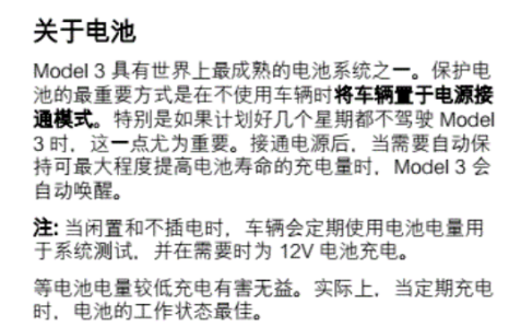特斯拉号称有着世界上最成熟的电池系统之一,尽管如此,特斯拉还是在他的使用手册里明确提出保护电池最重要的方式是:长期不用车就要时刻连着电源。