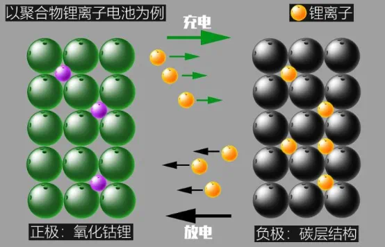 在正常充电的时候,锂离子通过隔膜从正极到负极,嵌入到负极的石墨中;在放电的时候,负极的锂离子从石墨中脱出经过隔膜到达正极,此时负极电位上升,正极电位下降;