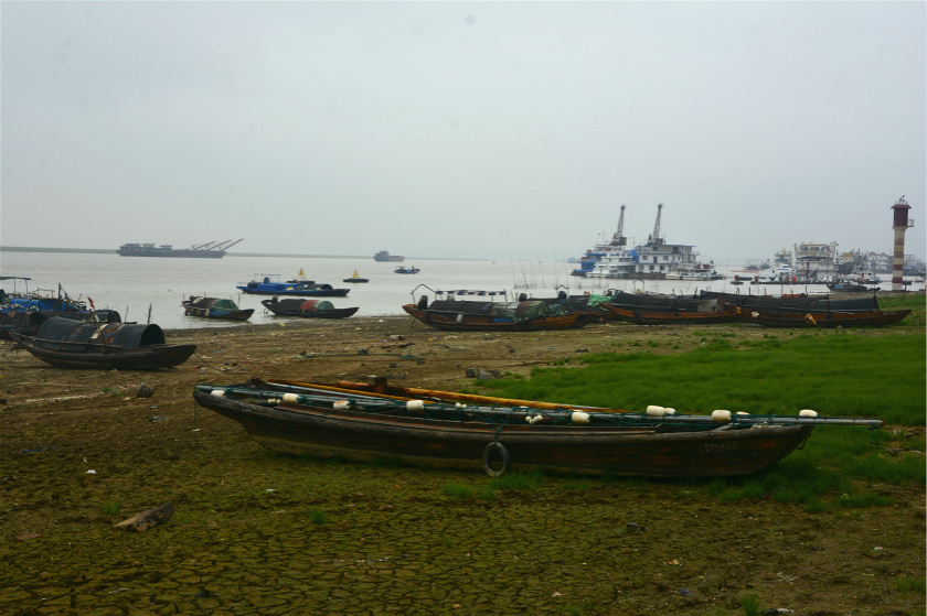 由于今年夏末水退得太快,张健保往上游南昌行船时,有时一趟三四天后回来发现水位大概又退了一米多。