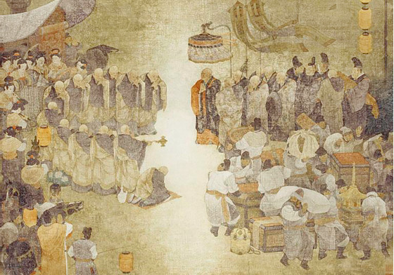 这四位僧人分别是荣睿、普照、戒融以及年轻的玄朗。这次出行的结果,最终延请到扬州的鉴真大师,但是关于这四位僧人的故事却相当简略,日本作家井上靖在《天平之甍》的工作是从只言片语中重建当时的历史场景。