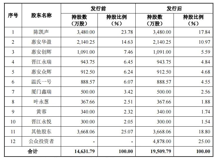 南王科技上市,陈凯声是最大赢家。上市前,陈凯声直接持股23.78%,并通过惠安众辉和晋江永瑞间接控制12.69%股份,合计持有36.47%股份。以申购价计算,南王科技市值达25亿元,陈凯声的身家超过7亿元,荣膺中国纸袋大王。
