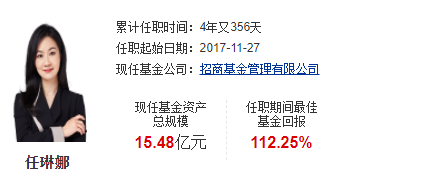 比如,基金经理任琳娜,累计任职时间超4年,任职期间最佳回报是在上一家基金公司获得。来招商基金后,其在管产品15.48亿,现任产品业绩,两年内全部为负,有3只产品近1年跌幅超20%。