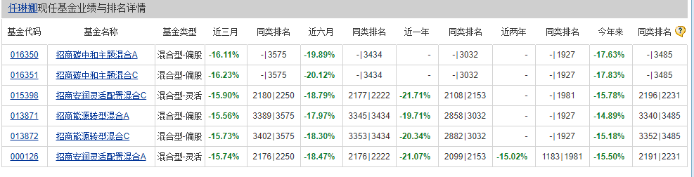 公司研究室注意到,招商基金公司部分基金经理在管产品业绩全负,看上去绿油油一片。