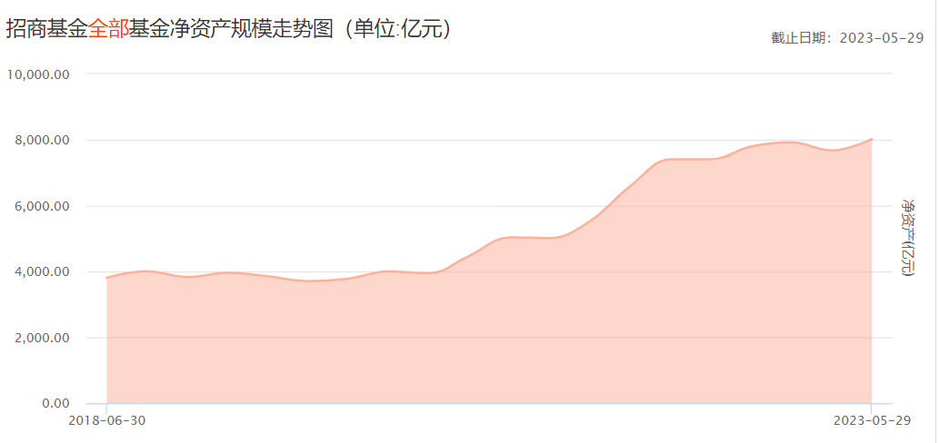 目前,招商基金公司旗下有495 只基金,其中普通基金475只,货币基金20只,基金经理70人。截至2023年5月29日,公司在管资产8020.79亿元。