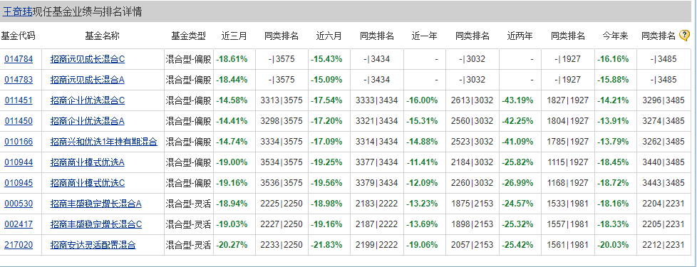 据公司研究室不完全统计,除了上述3位基金经理外,招商基金公司70位基金经理中,在管产品业绩全负或仅1-2只产品微红的还有13人。