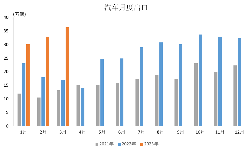 2021-2023中国汽车出口月度数据柱状对比图(图片来源:中国汽车工业协会网站)