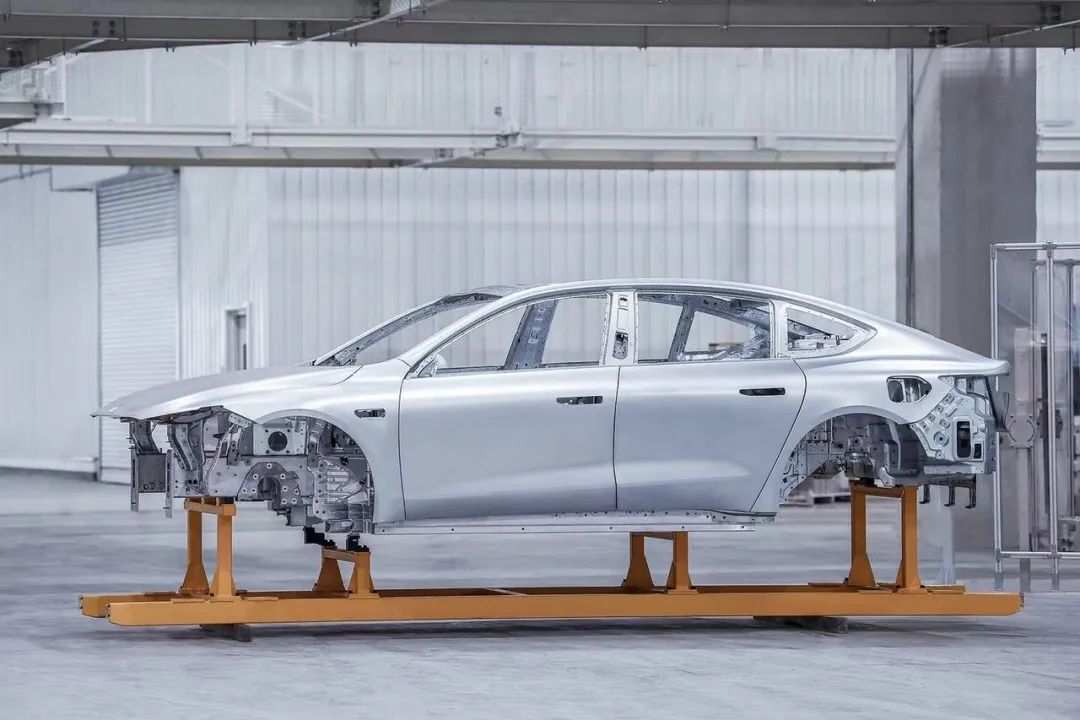 蔚来全铝车身产线生产的 ET7 白车身(图片来自:蔚来官方)