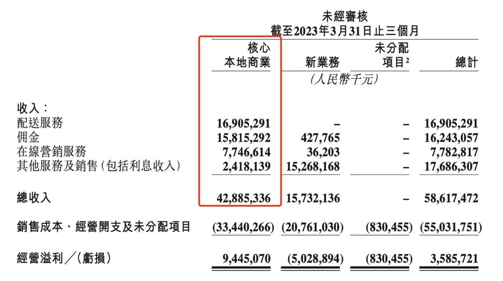 今年Q1,外卖服务和平台佣金提成依然是美团的营收支柱。财报显示,第一季度核心本地商业总收入428.85亿元,其中配送服务收入169.05亿元,佣金收入158.15亿元,在线营销服务收入77.47亿元,其他服务及销售(包括利息收入)24.18亿元。