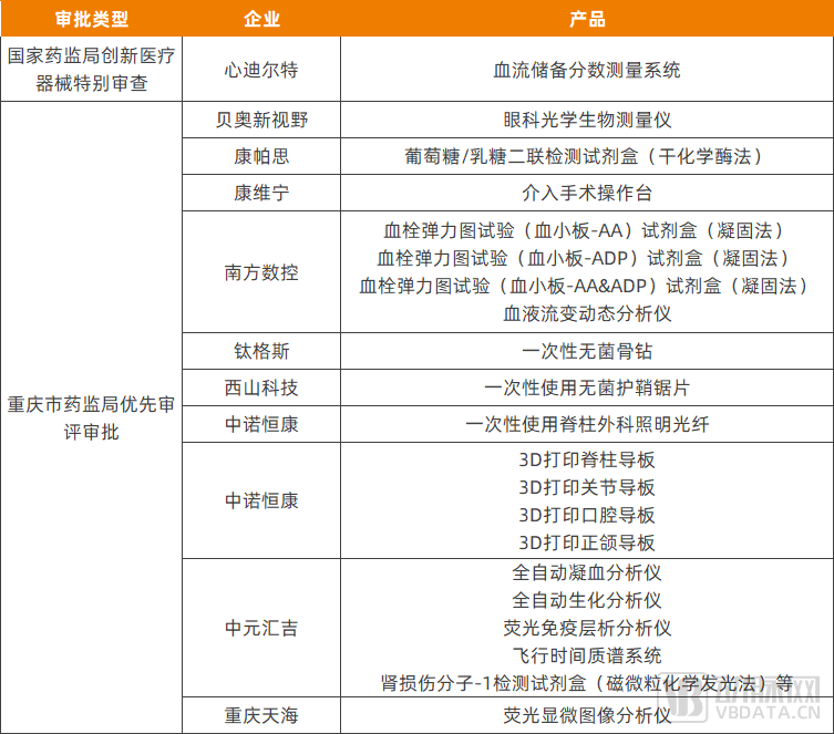 2022年以来重庆纳入国家药监局特别审批或市级优先审批的医疗器械,资料来源:药监局
