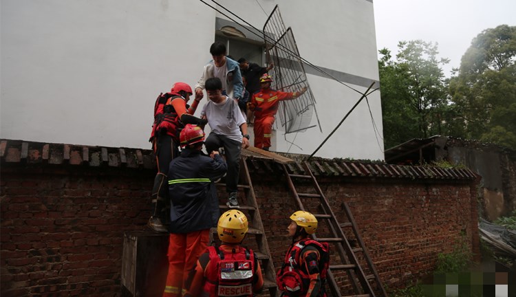 消防员在宿舍楼二楼后窗的位置利用木梯搭起一座“安全桥”,一直护送被困学生通过“木桥”、翻过围墙,带大家转移至两公里外的安全区域。6月1日7时40分,被困的356名学生全部被安全转移。