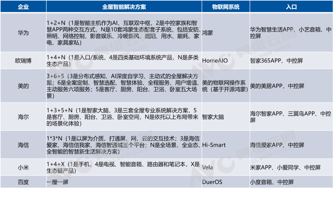 在全屋智能赛道,聚集了阿里、百度、小米等互联网企业,也有海尔、美的、海信等传统家电厂商,还有欧瑞博、绿米、涂鸦智能、博联等新兴智能家居厂商,更有以华为为首的通信厂商。