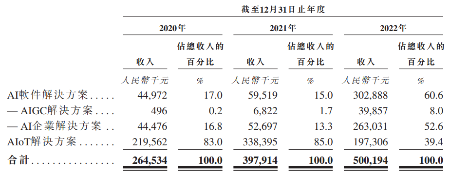 AIoT和企业业务,是目前出门问问的支柱业务。但在招股书中,出门问问更想突出的,是收入占比不大、看起来有前景的AIGC解决方案。