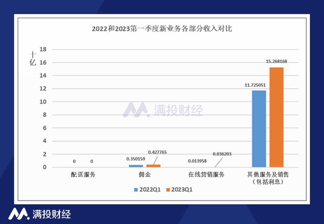 分业务来看,核心本地商业分布的收入在一季度实现了25.5%的同比增长,主要由配送服务、佣金以其他服务及销售等业务带来。其中佣金业务较去年同期增长32%,达到158亿元,而其他服务及销售是公司增速最快的部分,较去年同期增长达到143%。
