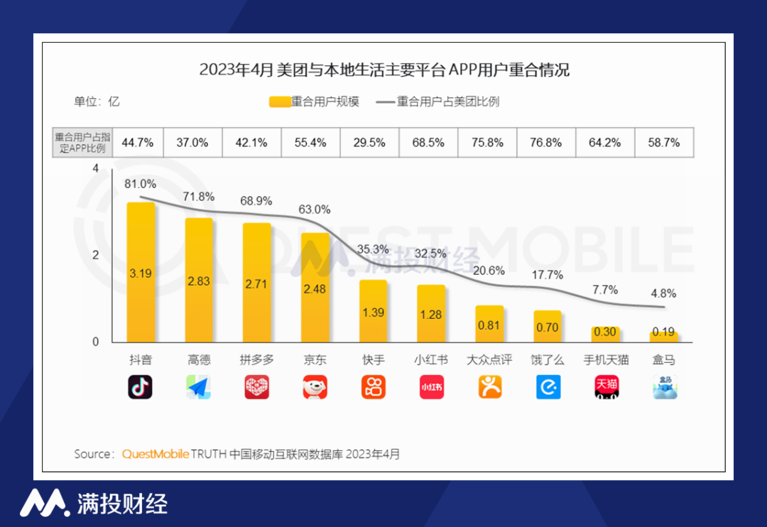 作为国内最大的短视频平台,抖音在流量上的优势使其在互联网行业竞争中充满优势。就用户角度而言,短视频用户与本地生活用户的重合度本身就比较高,而根据QuestMobile数据透露,抖音和美团活跃用户重合比例占美团app用户规模的比例高达81%,因此无论是在外卖业务还是在酒店业务方面,抖音在本地生活服务领域均有望对美团产生威胁。