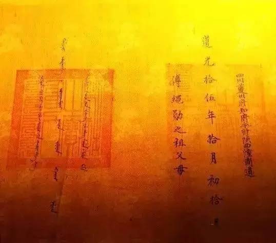 在清朝的圣旨中,一般汉文从最右端往左写的是汉文,从最左端往右写的是满文,然后合于中幅而书日期,中间盖一红印——“制诰之宝”或“敕命之宝”。