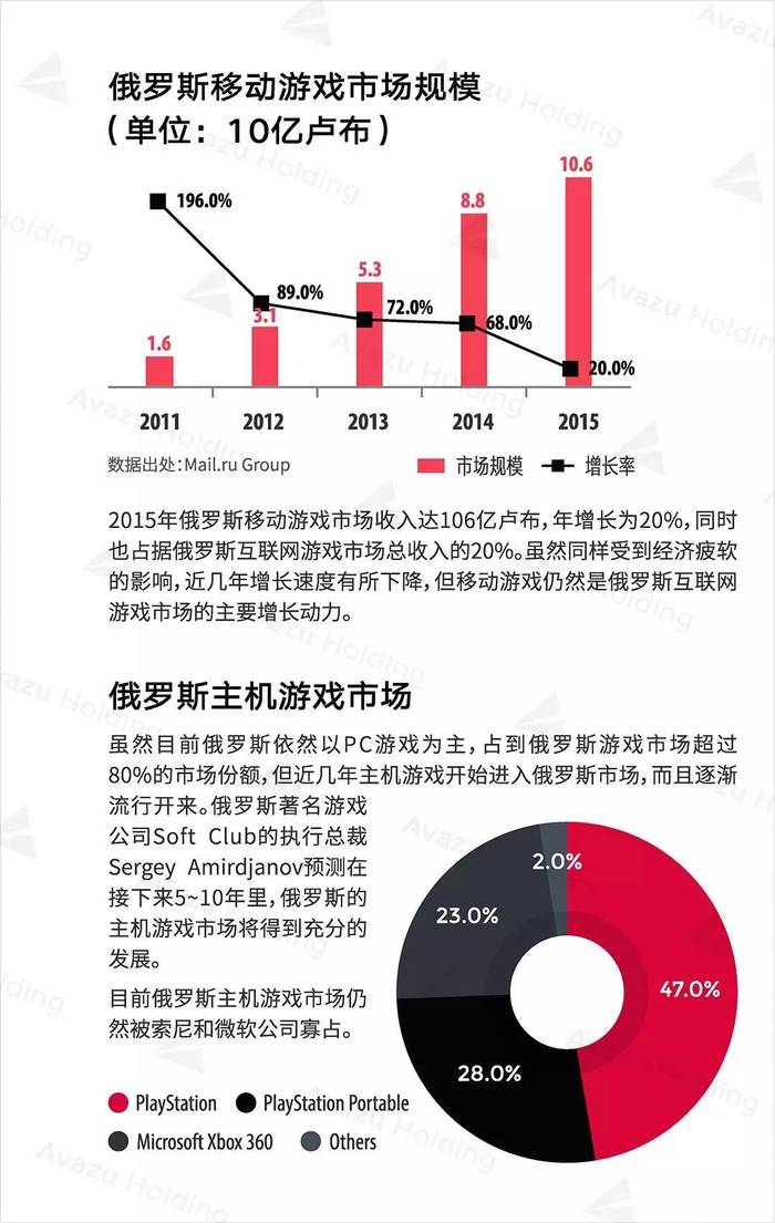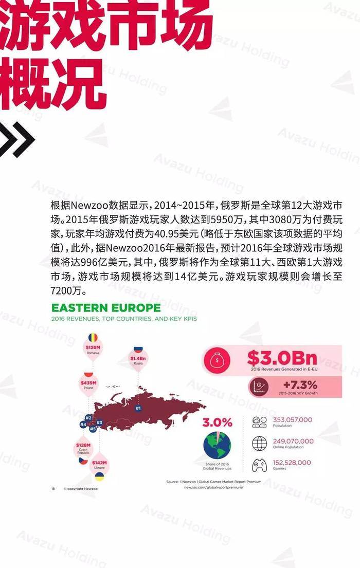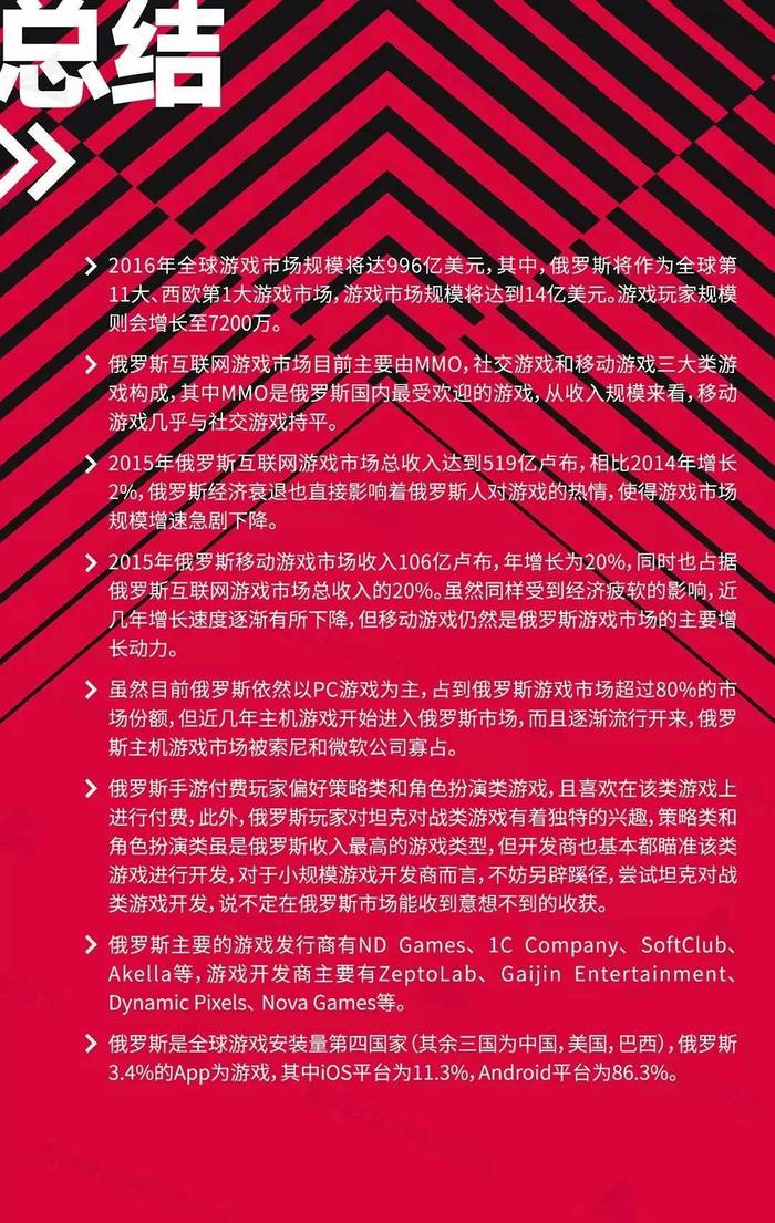 1.2016年全球游戏市场规模将达996亿美元,其中,俄罗斯作为全球第11大、西欧第1大游戏市场,游戏市场规模将达到14亿美元。游戏玩家规模则会增长至7200万。