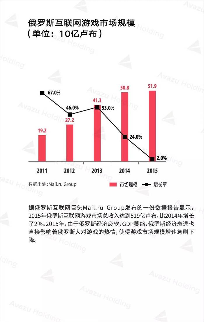 2.2015年俄罗斯移动游戏市场收入106亿卢布,年增长20%,同时也占据俄罗斯互联网游戏市场总收入20%。虽然同样受到经济疲软的影响,近几年增长速度逐渐有所下降,但移动游戏仍然是俄罗斯游戏市场的主要增长动力。