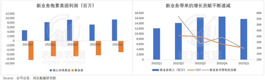 2023Q1新业务收入同比增速降低至30%,对营收增长的贡献率从2022Q2的57%降低至29.5%。