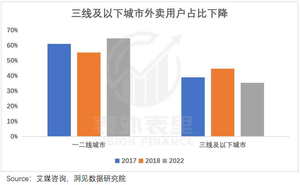 比如,2018年三四线及以下城市用户占比增加5.8%至44%,曾驱动外卖市场大幅增长。