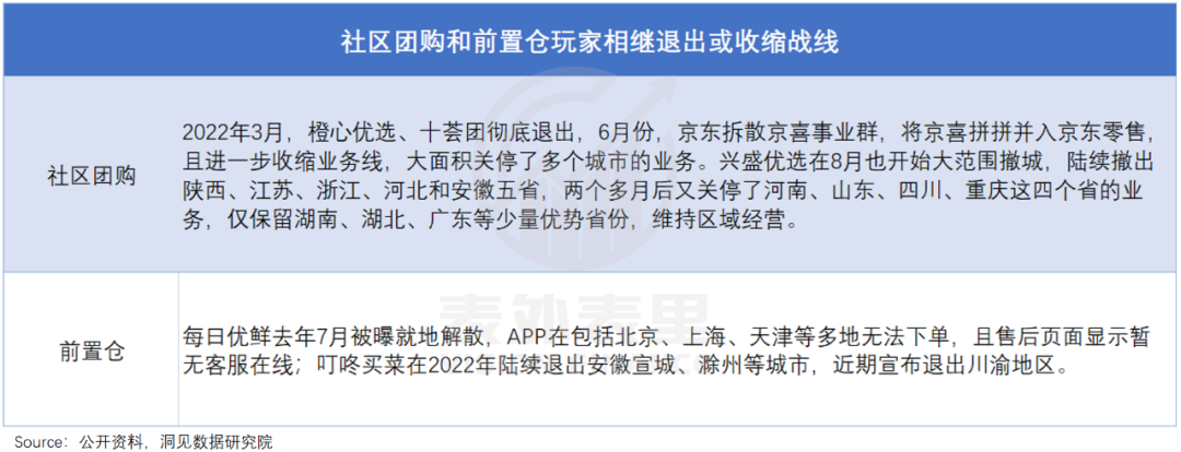 年初,美团买菜进入苏州市场,开启逆势扩张,这或许有“抄底”的意思,毕竟叮咚买菜最近宣布退出川渝市场,朴朴超市表示2023年选择“保守”策略。