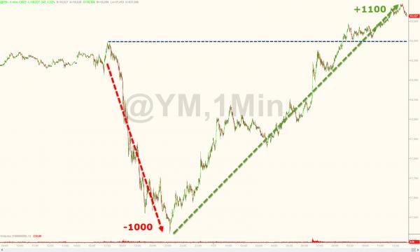 道指期货日内巨震2100点(从跌1000点到反弹1100点),至纪录高位...
