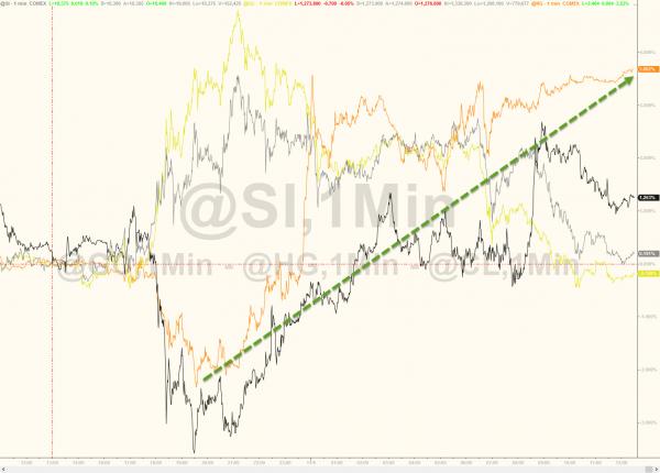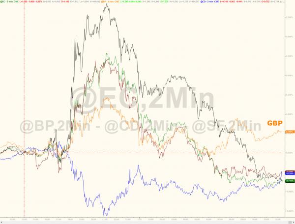 然而,这一切在欧美时段出现了颠覆性逆转:欧美股市短暂下跌后上扬,美股期货从触及跌停板到上涨,避险黄金日元美债大幅回吐涨幅并最终转跌,美指由跌转涨...是的,市场风险偏好情绪重新回暖了!