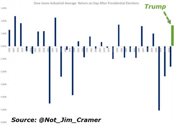 道指创下1980年里根当选总统以来选举日的最佳单日表现...