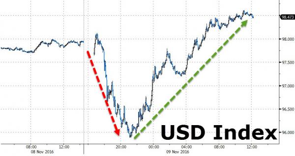 美国共和党总统候选人特朗普(Donald Trump)于美国当地时间周二(11月8日)击败了被各方看好的民主党候选人希拉里入主白宫,震惊全球!而同样震惊全球的还有市场反应,从大跌到...大喜?
