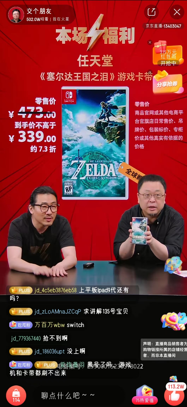 今年,京东上线“百万补贴”活动,加入到“卷低价”的电商厮杀之中。京东方面也表示,今年平台将打造全行业投入力度最大的618。而京东之所以再次重视直播,或许是产品低价的信号,也能通过头部主播的带货被放大。