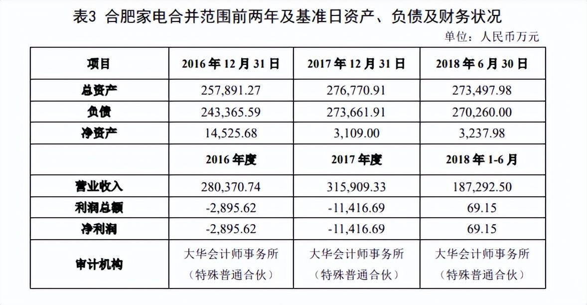 2018年上半年,合肥家电实现营收18.73亿元,归母净利69.15万元,负债合计27.02亿元,资产负债率更是高达99%。