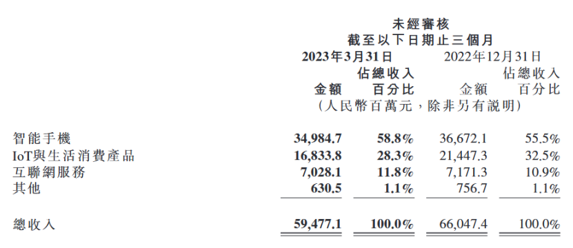主要原因还是盈利业务增长比较困难。今年一季度,虽然小米盈利的水平在提高,但是营收仍处于下滑态势。