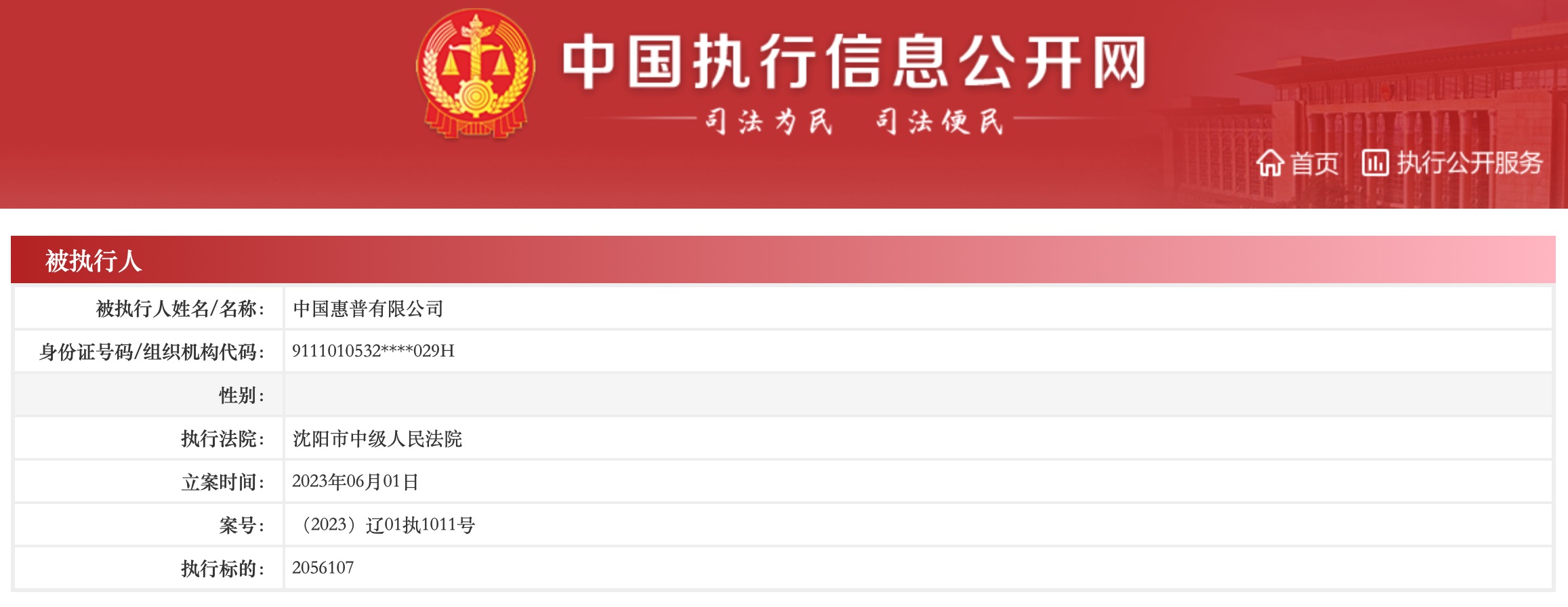 中国执行信息公开网显示,6月1日,中国惠普有限公司新增一则被执行人信息,执行标的205万余元,执行法院为沈阳市中级人民法院。天眼查App显示,该公司成立于2015年3月,法定代表人为庄正松,注册资本1600万美元,由惠普中国控股私人有限责任公司(HP China Holding B.V.)全资持股。