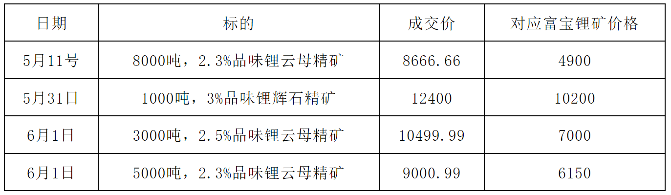 上海有色金属网显示,6月1日的一项3000吨锂云母拍卖标的,最终拍出约1.05万元/吨的价格,折合碳酸锂成本超过了30万元/吨。