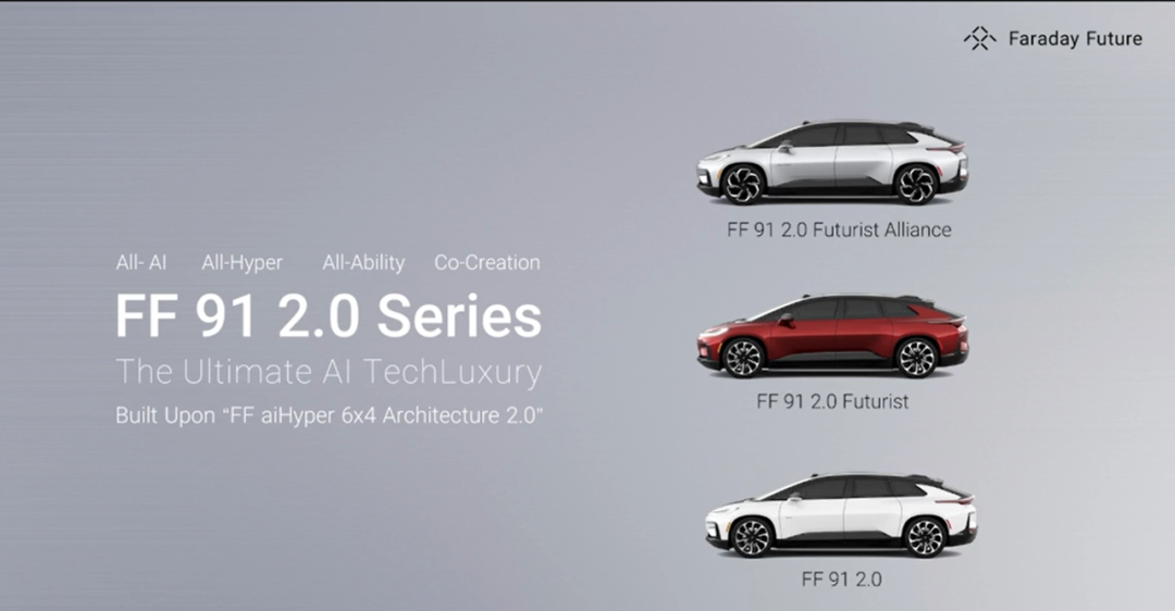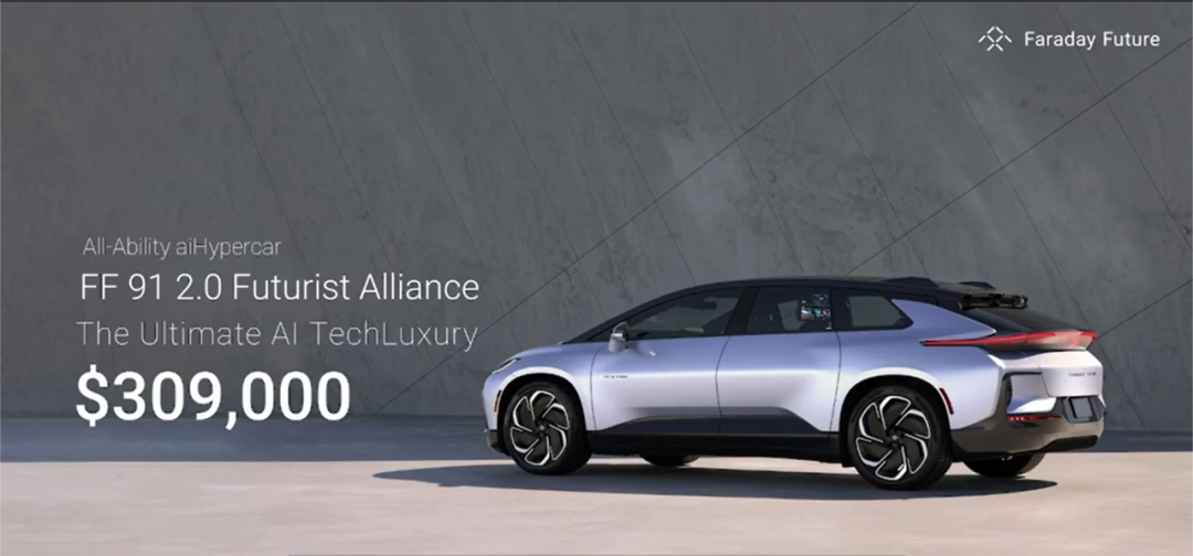 以FF 91 2.0的交付为例,按照FF官方介绍,该系列车型的最高配车型(FF 91 2.0 Futurist Alliance)率先交付,但全球限量300辆。系列中的其他两款产品——FF 91 2.0 Futurist和FF 91 2.0,并未公布售价,也没有告知何时交付。
